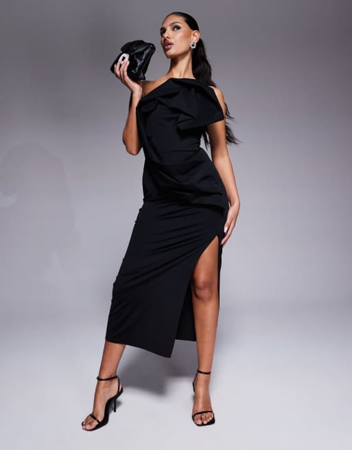 ASOS DESIGN - Robe structurée mi-longue à détail rabattu - Noir