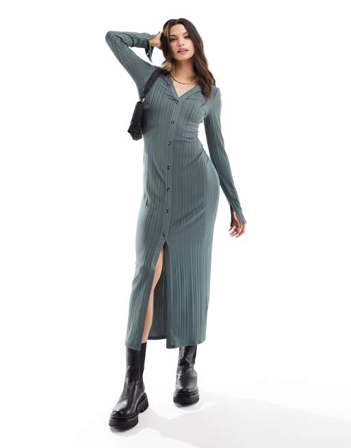 ASOS DESIGN - Robe style gilet long texturée boutonnée à l'avant - Vert