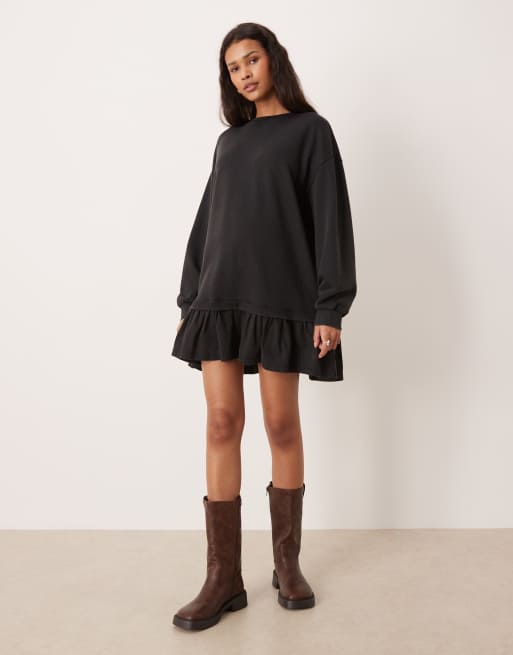 ASOS DESIGN - Robe sweat à ourlet tissé court - Anthracite