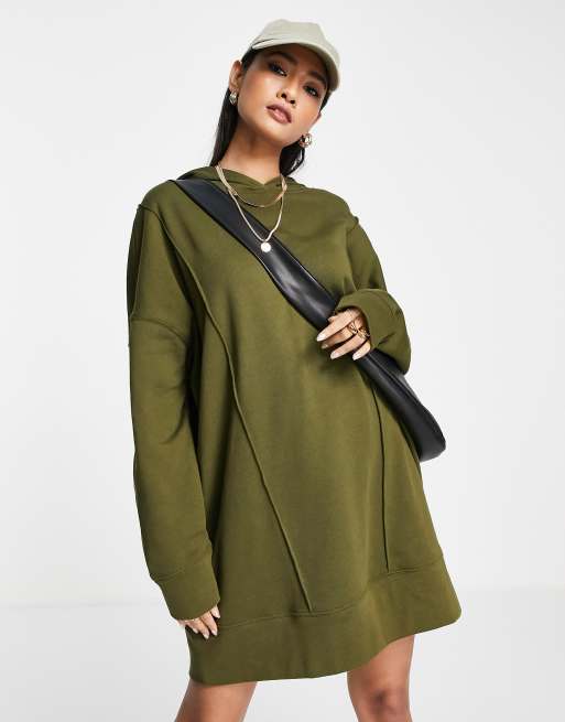 ASOS DESIGN - Robe sweat oversize à capuche et coutures apparentes - Vert kaki