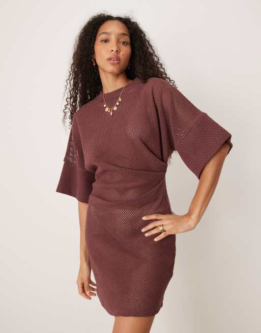 ASOS DESIGN - Robe t-shirt courte en crochet effet rentré - Chocolat