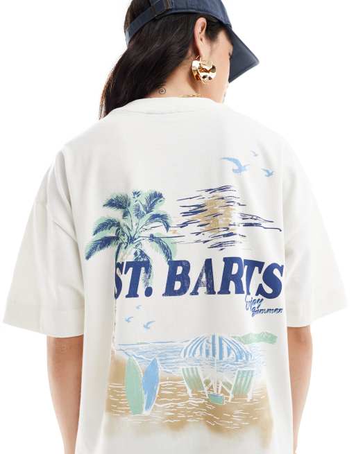 ASOS DESIGN - Robe t-shirt courte et oversize à imprimé St. Barts - Crème