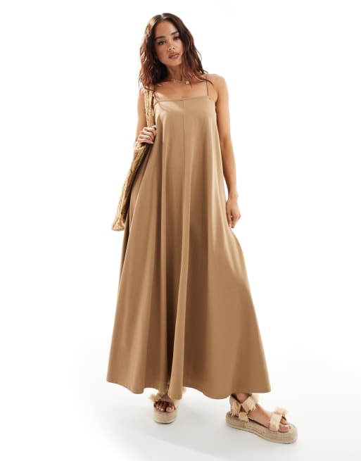 ASOS DESIGN - Robe trapèze mi-longue à fines bretelles - Camel