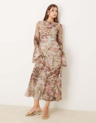 ASOS DESIGN - Robe volantée longue à surpiqûres avec imprimés fleuri et animal