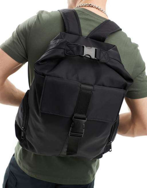 ASOS DESIGN - Sac à dos avec poches et fermoir mousqueton à l'avant - Noir