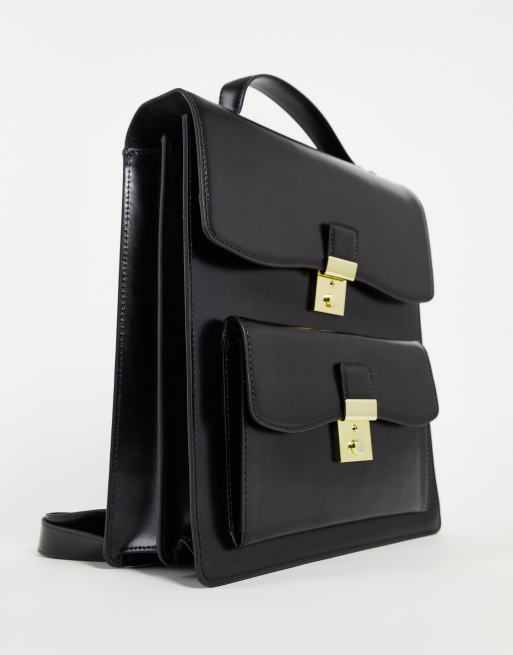 ASOS DESIGN - Sac à dos premium en cuir avec détail poches - Noir