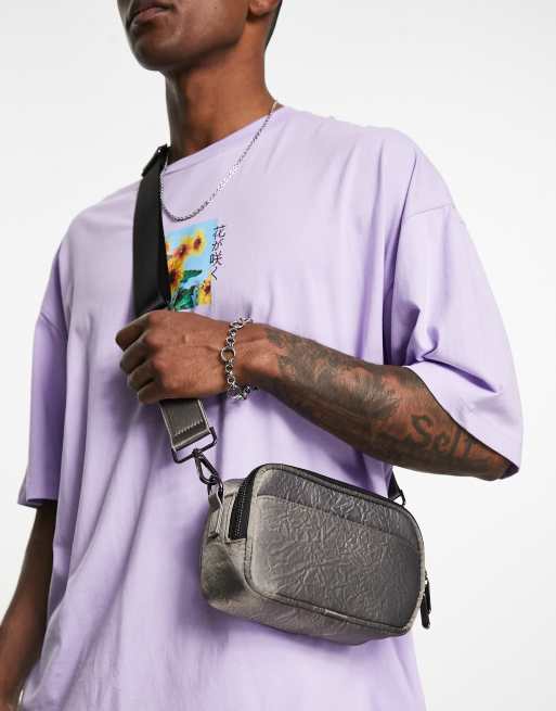ASOS DESIGN - Sac bandoulière rigide effet froissé - Gris