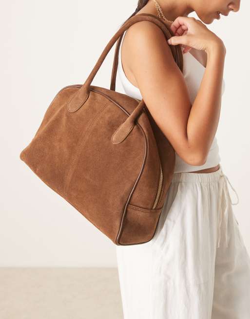 ASOS DESIGN - Sac bowling en daim de qualité supérieure - Chocolat
