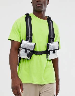ASOS DESIGN - Sac harnais avec tulle - Argenté métallisé