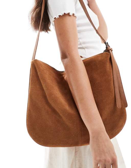 ASOS DESIGN - Sac porté épaule souple en daim avec bandoulière double - Fauve