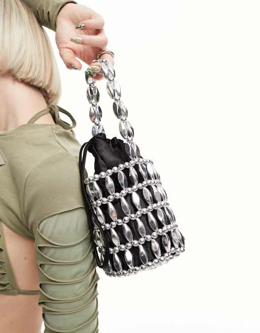 ASOS DESIGN - Sac seau orné de perles - Argenté