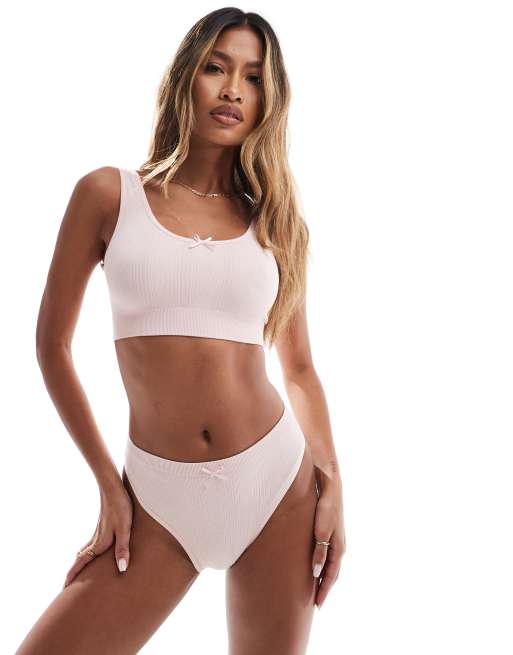 ASOS DESIGN - Samira - Ensemble crop top à encolure dégagée et culotte en maille pointelle - Rose pastel