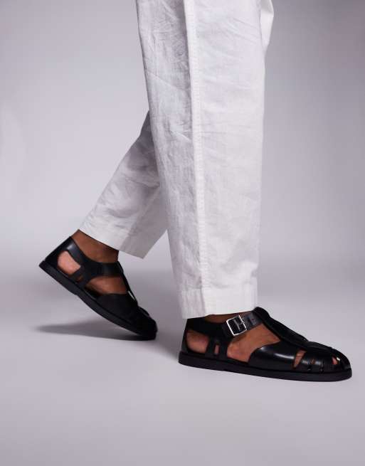 ASOS DESIGN - Sandales en cuir style pêcheur fermées - Noir