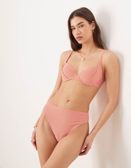 ASOS DESIGN - Scarlet Azores - Bas de bikini échancré à taille haute à rayures - Orange