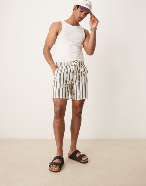 ASOS DESIGN - Short ajusté à pinces et rayures - Bleu marine/blanc