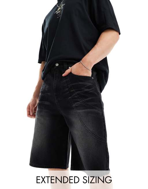 ASOS DESIGN - Short ample long en jean à empiècements - Noir délavé