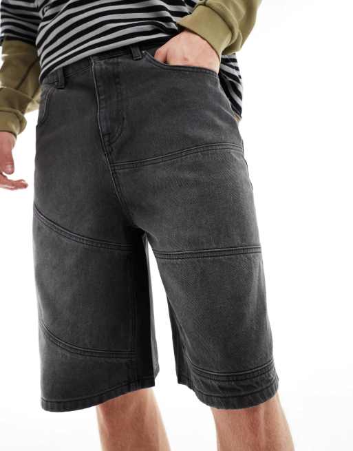 ASOS DESIGN - Short ample long en jean à empiècements - Noir délavé