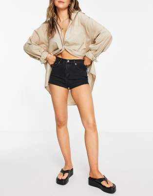 ASOS DESIGN - Short court en jean à taille haute - Noir délavé - BLACK