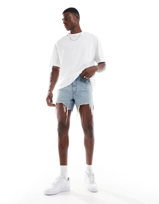 ASOS DESIGN - Short court slim en jean avec déchirures - Bleu clair délavé