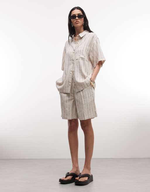 ASOS DESIGN - Short dad en lin mélangé coupe décontractée à rayures - Naturel