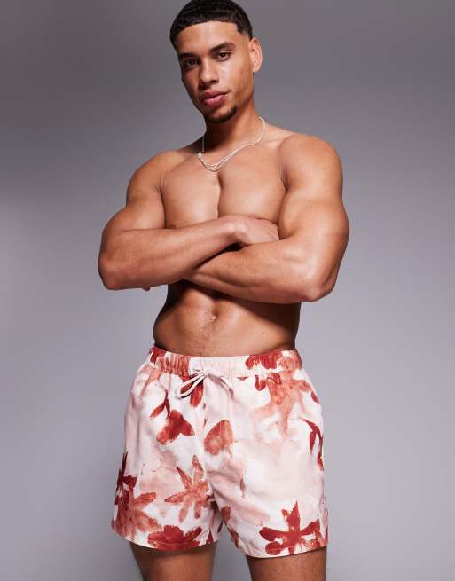 ASOS DESIGN - Short de bain court à imprimé fleurs - Rose