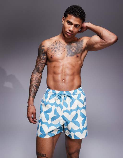 ASOS DESIGN - Short de bain court à imprimé géométrique - Bleu