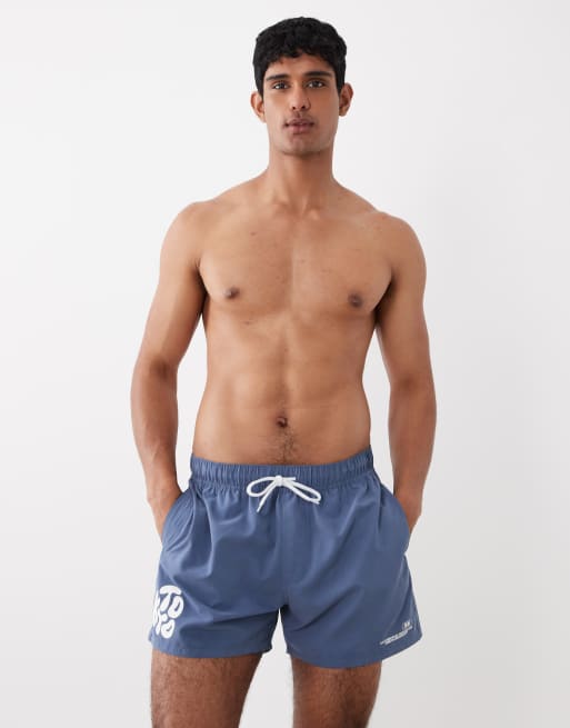 ASOS DESIGN - Short de bain court à imprimé placé en silicone - Bleu