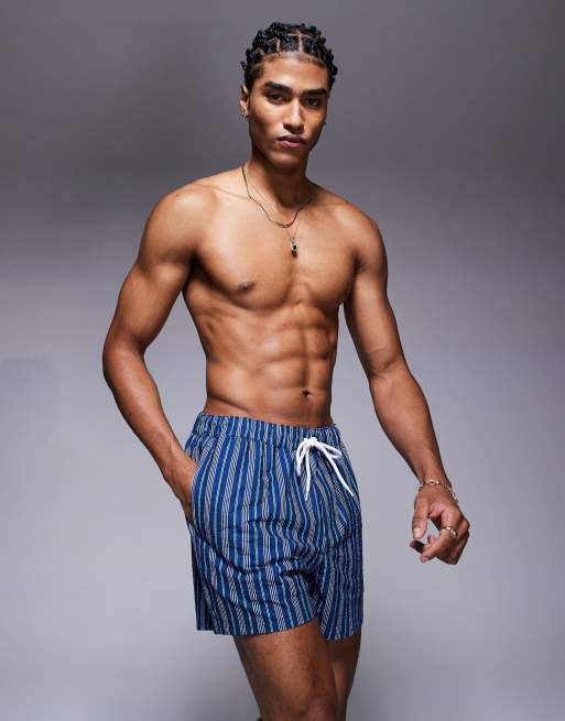 ASOS DESIGN - Short de bain court à rayures - Bleu