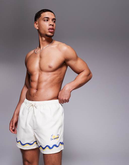 ASOS DESIGN - Short de bain court avec bordures imprimées - Taupe