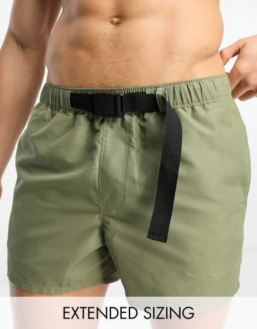 ASOS DESIGN - Short de bain court avec ceinture - Kaki