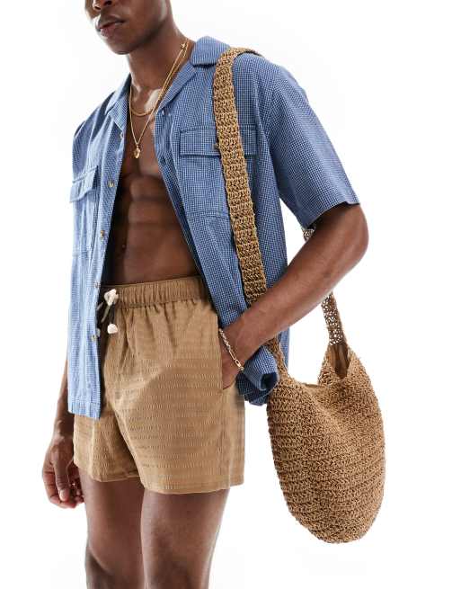 ASOS DESIGN - Short de bain court avec cordon de serrage en corde - Marron
