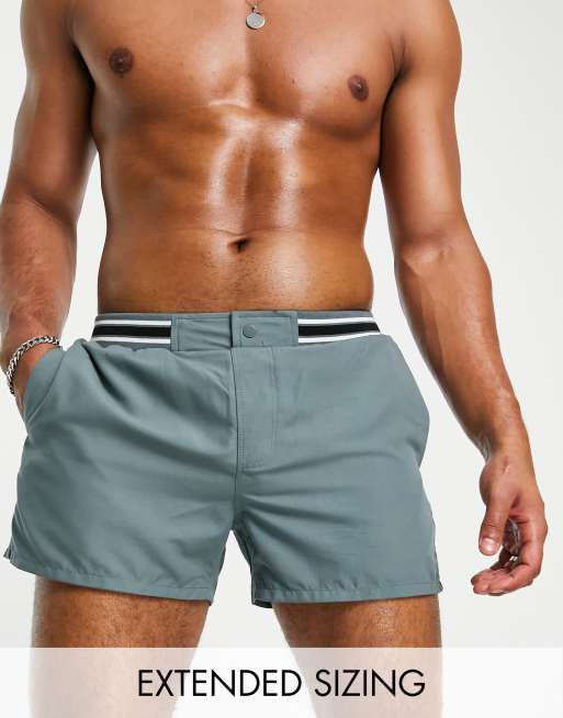 ASOS DESIGN - Short de bain court élégant à côtes contrastantes - Bleu