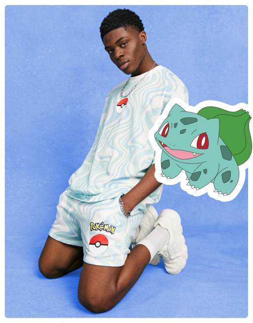 ASOS DESIGN - Short d'ensemble à imprimé Pokémon sur toute la surface - Bleu