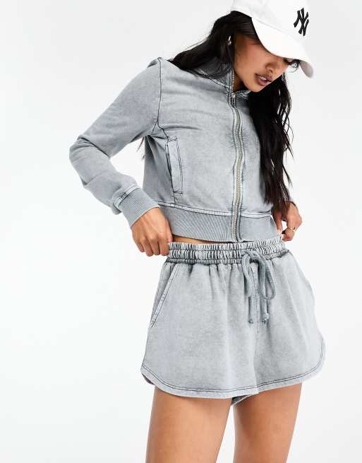 ASOS DESIGN - Short d'ensemble coupe running en molleton - Denim délavé