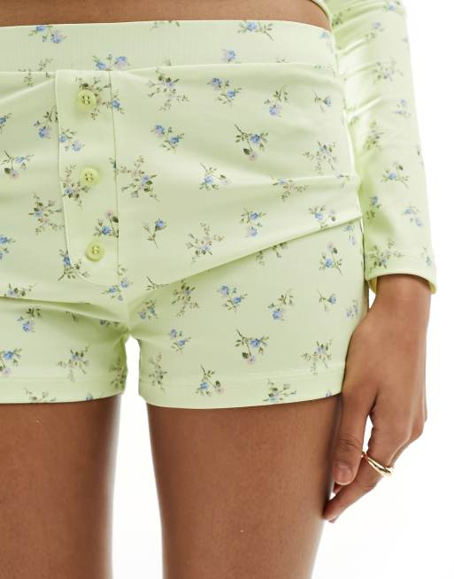 ASOS DESIGN - Short d'ensemble moulant à petites fleurs - Jaune citron