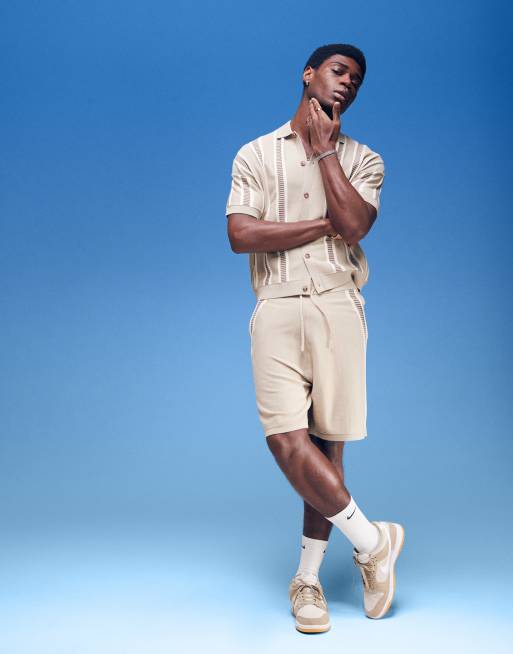 ASOS DESIGN - Short d'ensemble oversize en maille avec rayure texturée sur les côtés - Beige