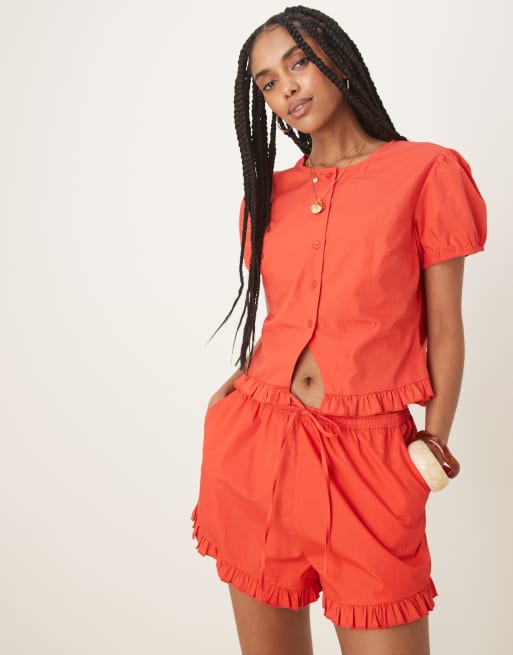 ASOS DESIGN - Short d'ensemble volanté - Rouge