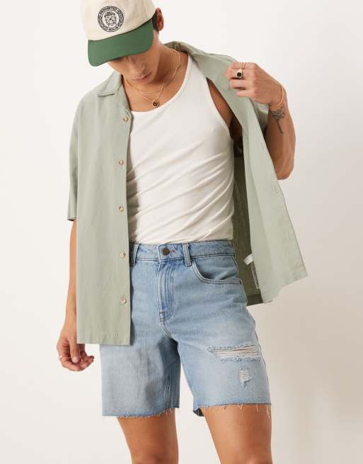 ASOS DESIGN - Short en jean mi-long coupe slim à déchirures - Bleu clair délavé