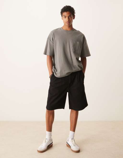 ASOS DESIGN - Short large en jean mi-long avec plis - Noir délavé