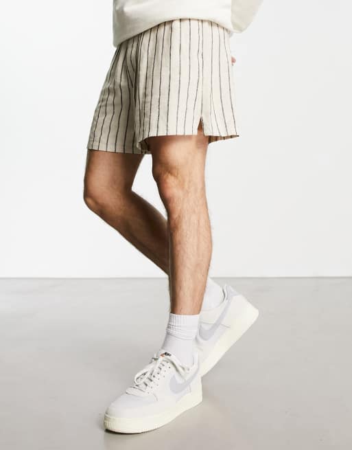 ASOS DESIGN - Short large mi-long en lin mélangé à rayures - Beige