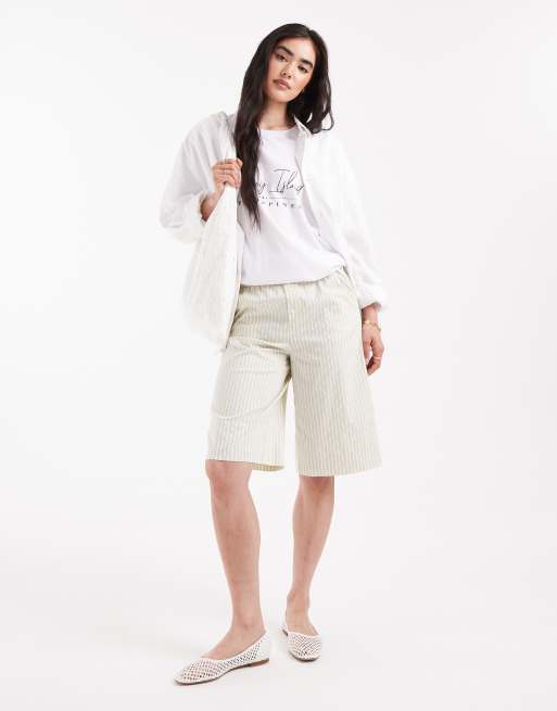 ASOS DESIGN - Short long style caleçon à rayures - Babeurre