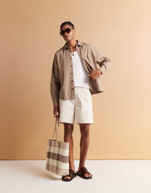 ASOS DESIGN - Short mi-long à enfiler en lin mélangé - Taupe
