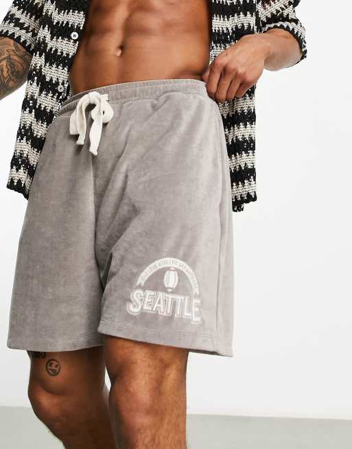ASOS DESIGN - Short oversize en tissu éponge avec nom de ville brodé - Gris