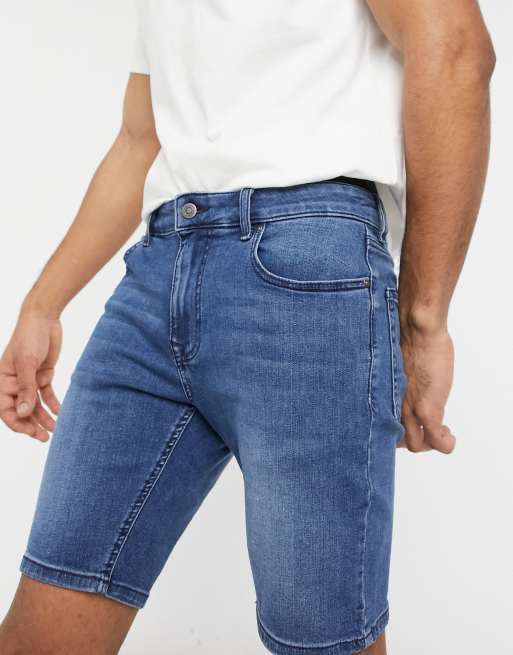 ASOS DESIGN - Short seconde peau en jean power stretch - Délavage bleu foncé