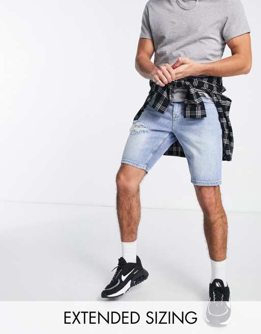 ASOS DESIGN - Short slim en jean déchiré - Bleu clair délavé