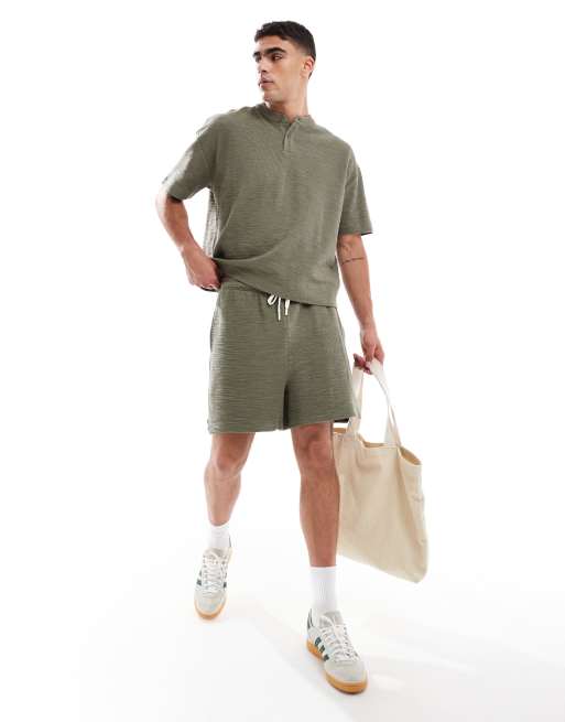 ASOS DESIGN - Short texturé oversize - Kaki