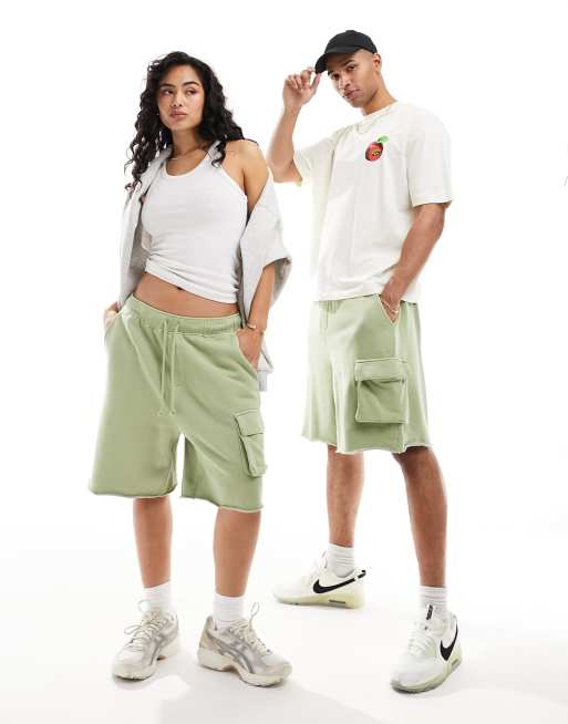 ASOS DESIGN - Short unisexe oversize à poche cargo - Vert délavé