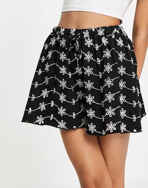 ASOS Design - Short virevoltant brodé - Noir et blanc