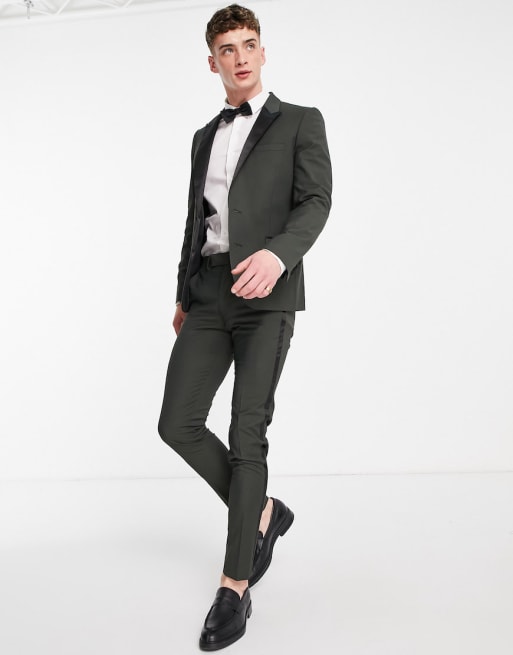 ASOS DESIGN - Smoking ajusté avec revers noirs - Vert forêt