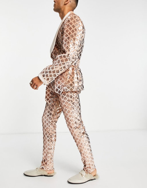 ASOS DESIGN - Smoking skinny à sequins et à strass - Champagne